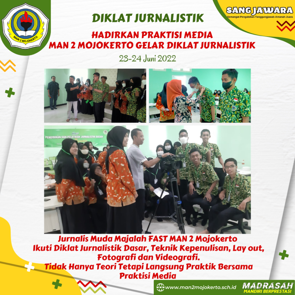 (Kab. Mojokerto) Madrasah Aliyah Negeri 2 Mojokerto mengelar Pendidikan dan pelatihan (diklat) jurnalistik dasar. Kegiatan ini dilaksanakan pada hari Kamis-Jumat (23-24) Juni. Bertempat di aula asrama MAN 2 Mojokerto. Diklar […]