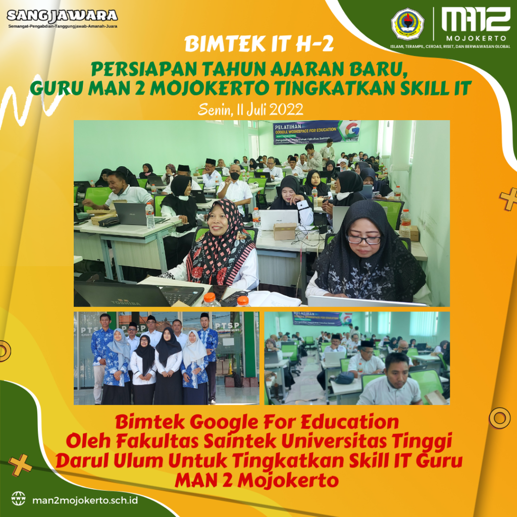 Kab. Mojokerto (MAN 2 Mojokerto) Sebagai upaya untuk meningkatkan kemampuan penguasaan IT (Information and Technology), Guru Madrasah Aliyah Negeri (MAN) 2 Mojokerto mengikuti Pelatihan Google for Education (12/7). Kegiatan ini […]