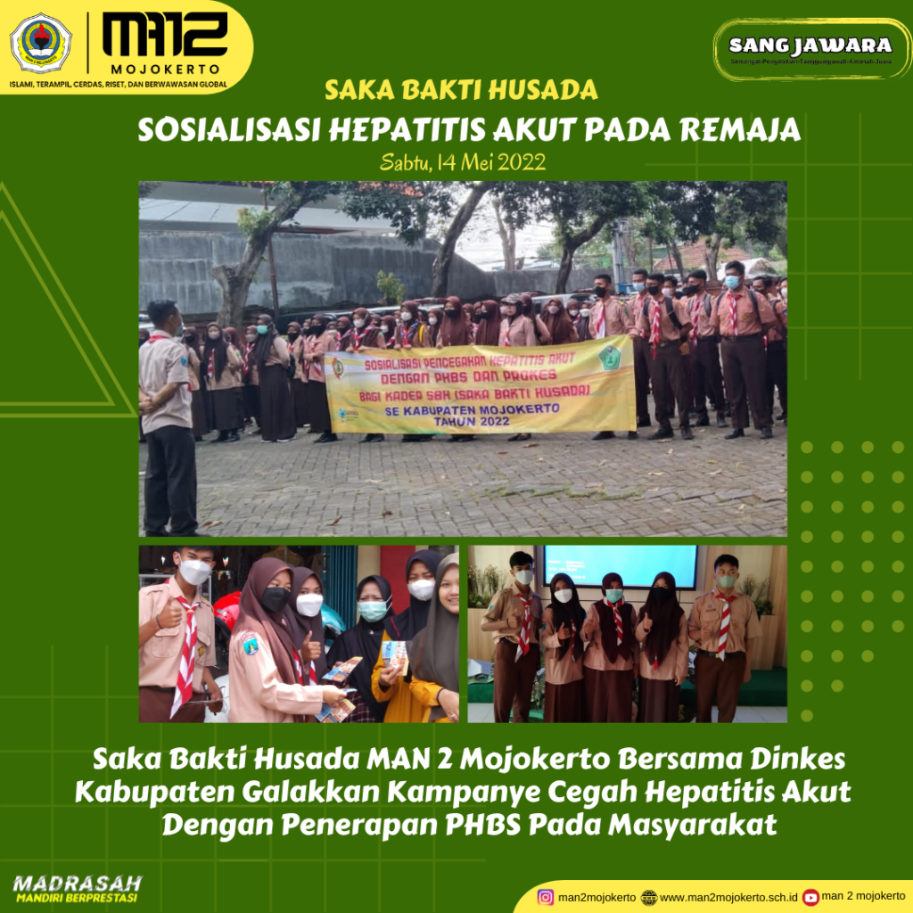 Kab. Mojokerto (MAN 2 Mojokerto) Empat siswa MAN 2 Mojokerto yang tergabung dalam Saka Bakti Husada hari ini (14/5) mengikuti Sosialisasi Pencegahan Hepatitis Akut yang diselenggarakan oleh Dinas Kesehatan Kabupaten […]