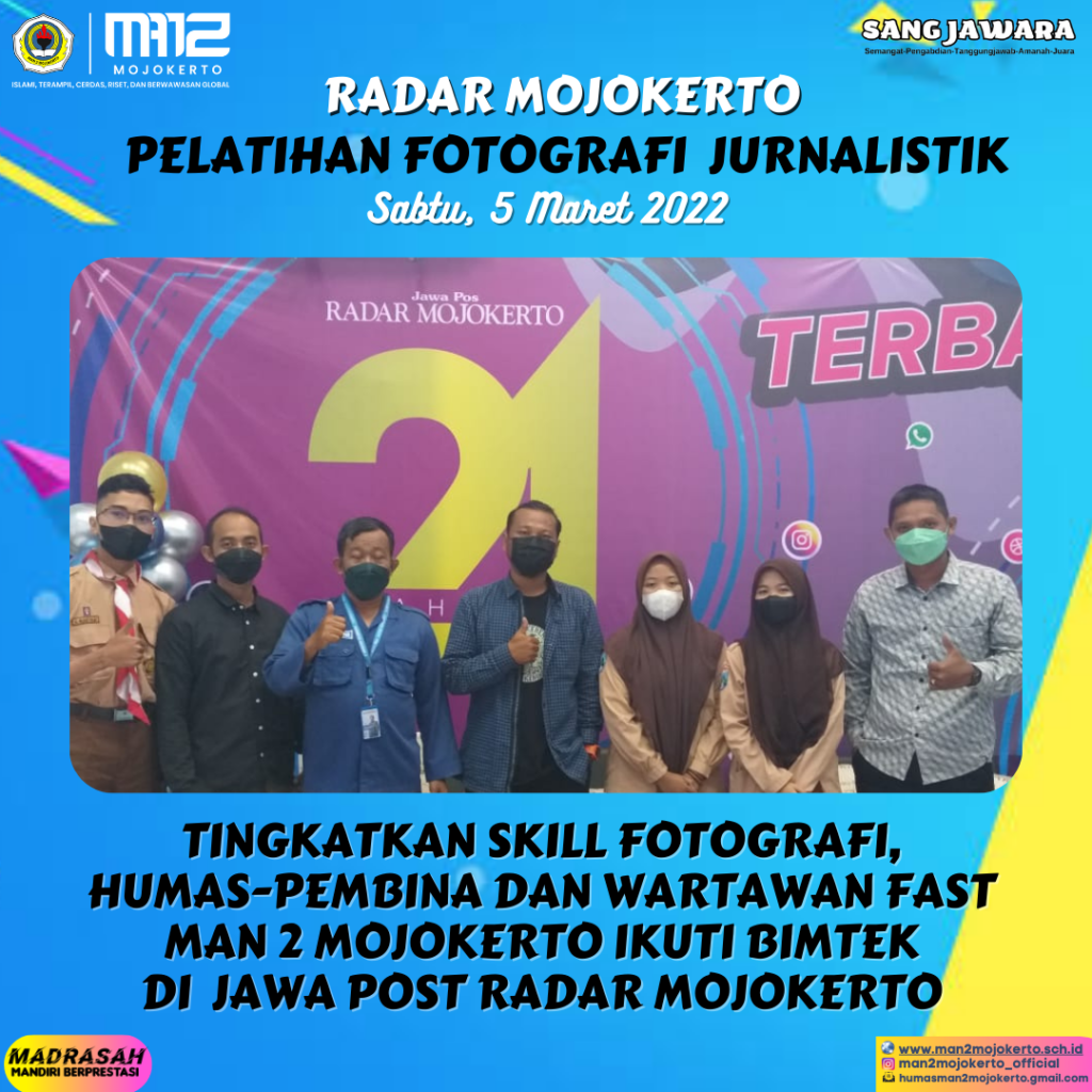 Kab. Mojokerto (MAN 2 Mojokerto) Untuk meningkatkan kemampuan jurnalitik dan fotografi, Humas MAN 2 Mojokerto, pembina dan wartawan majalah FAST mengikuti kegiatan Pelatihan Juranilistik dan Fotografi yang diselenggarakan oleh Jawa […]