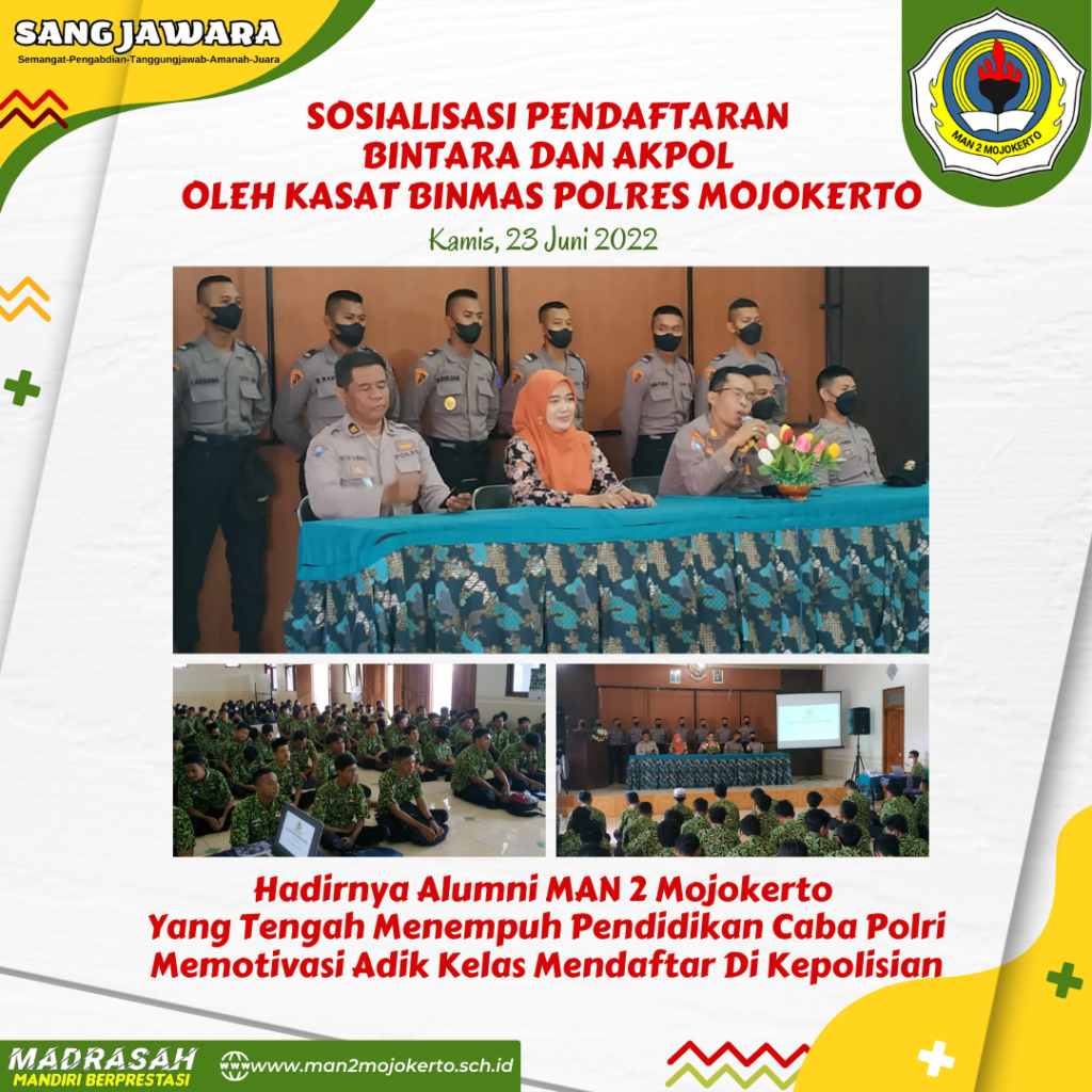 Sosialisasi Pendaftaran Caba dan Akpol Oleh Kasat Binmas Polres Mojokerto di MAN 2 Mojokerto