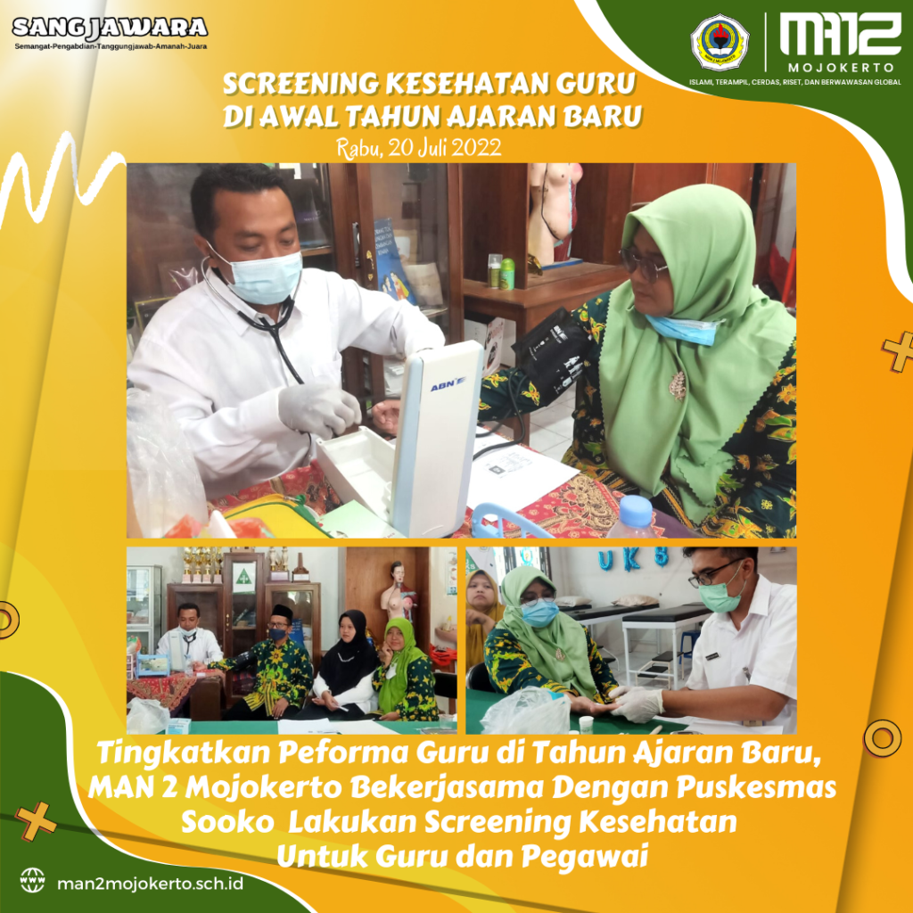 Tingkatkan Peforma Guru di Tahun Ajaran Baru, MAN 2 Mojokerto Bekerjasama Dengan Puskesmas Sooko Mojokerto Lakukan Screening Kesehatan Untuk Guru dan Pegawai