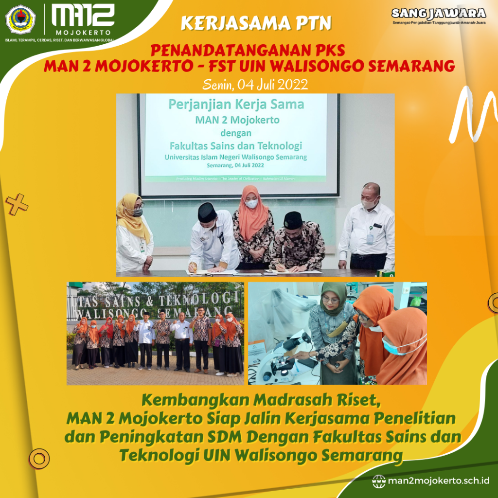 Penandatanganan PKS Antara MAN 2 Mojokerto dan UIN Walisongo Semarang. Siap Tingkatkan SDM dan Kembangkan Penelitian Bersama