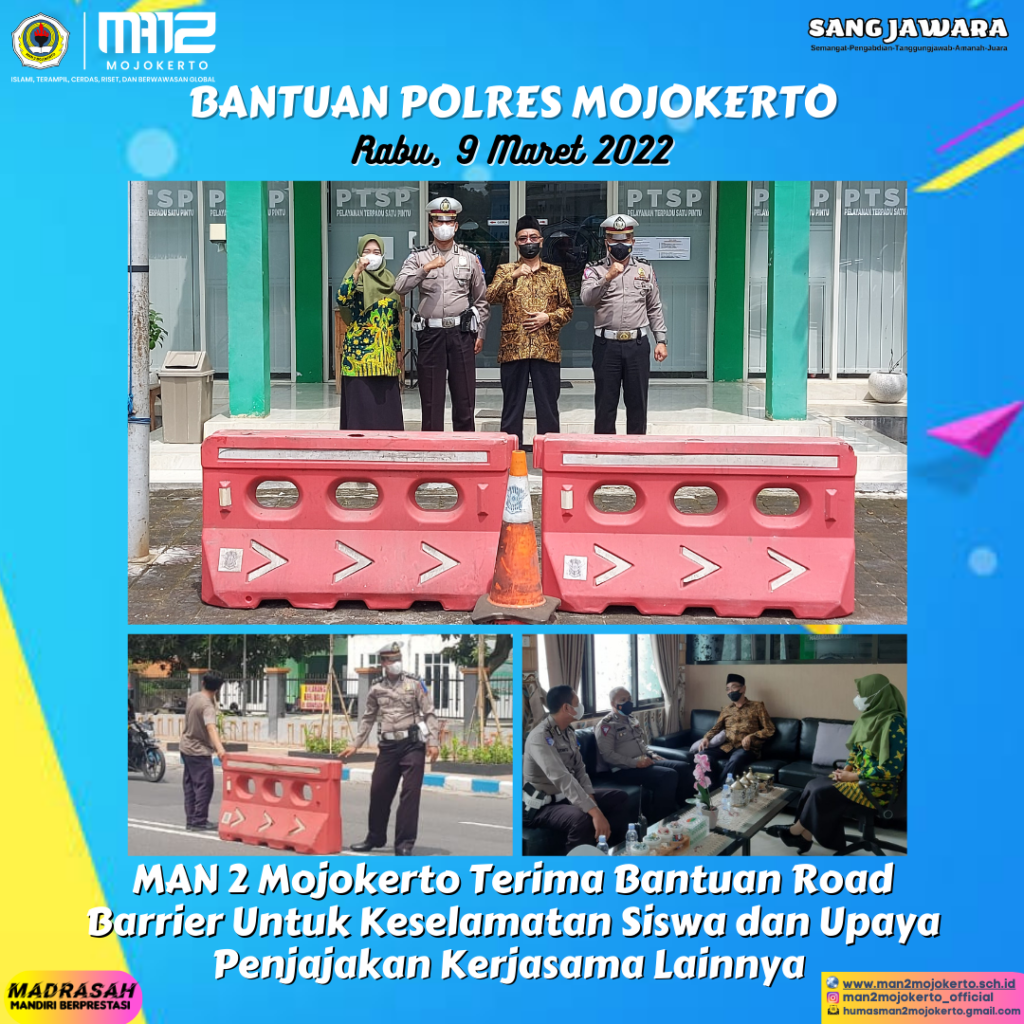 Kab. Mojokerto (MAN 2 Mojokerto) Polres Mojokerto melalui Kanit Gakkum (Penegakan Hukum) dan Kamseltibcar lantas (Keamanan Keselematan Ketertiban dan Kelancaran Lalu Lintas) tadi pagi (9/3) menyerahkan bantuan berupa Road Barrier […]