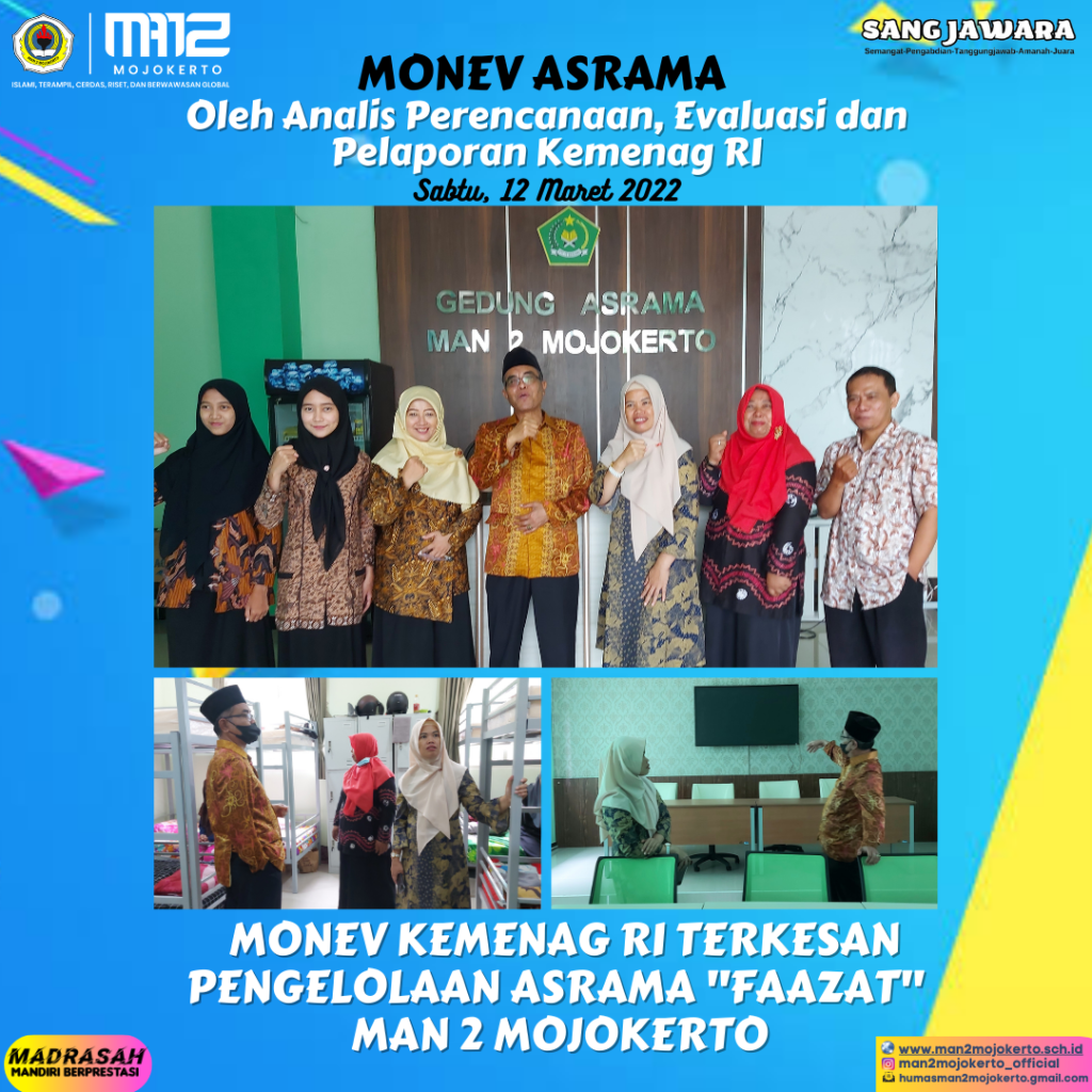 Mantapkan Madrasah Berbasis Ma’had/Asrama, Monev Kemenag RI Terkesan Dengan Pengelolaan Faazat MAN 2 Mojokerto