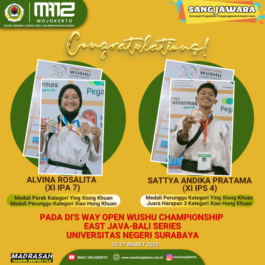 Atlet Kung-fu Wushu MAN 2 Mojokerto Sisihkan Ratusan Pesaing, Berjaya Sabet Medali di Di’s Way Open Wushu Championship Se-Jawa Bali