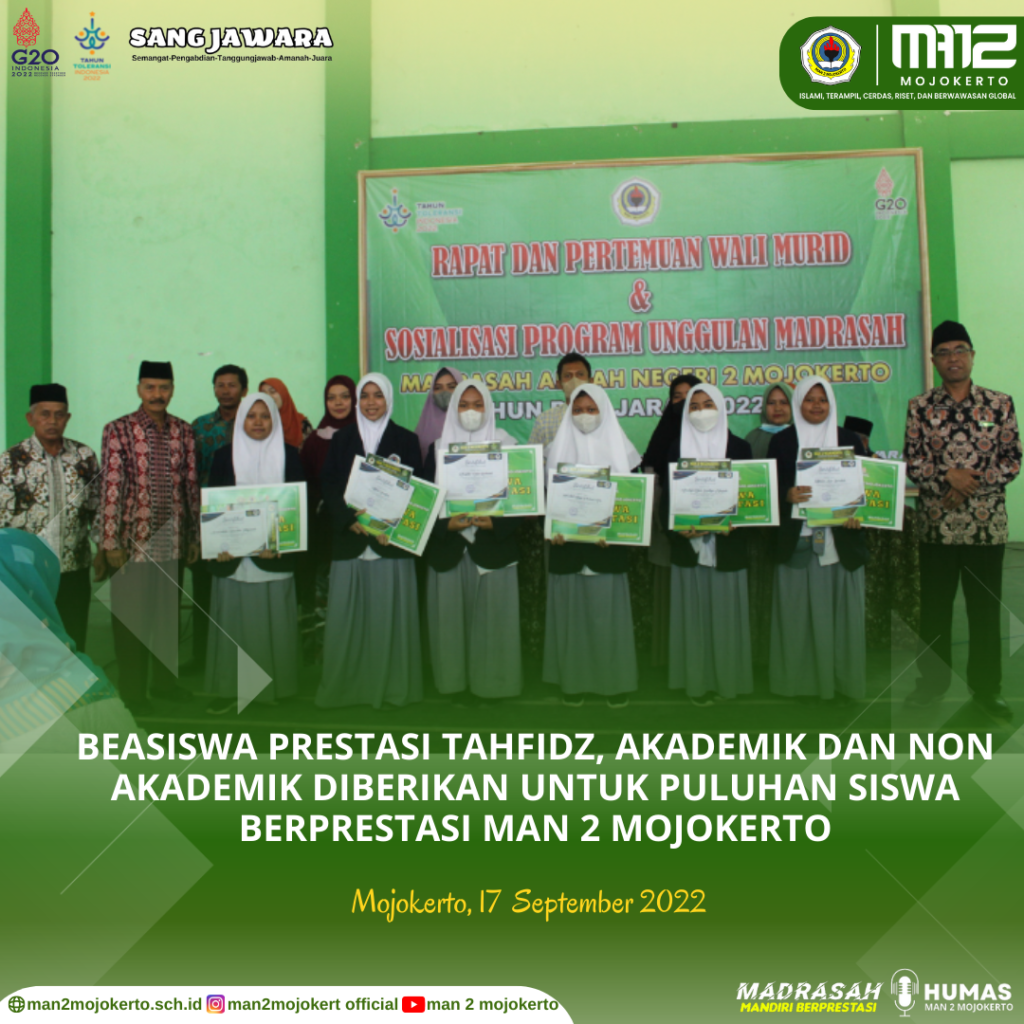 Beasiswa Prestasi Tahfidz, Akademik dan Non Akademik Diberikan Untuk Puluhan Siswa Berprestasi MAN 2 Mojokerto